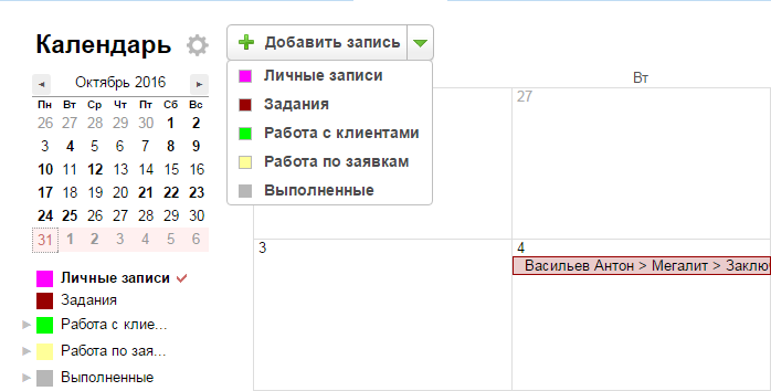 Календарь в CRM системе