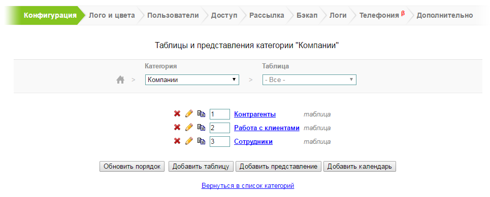 Важнейшей особенностью CRM системы является возможность самостоятельно создавать нужные таблицы и редактировать существующие. Таким образом, вы не подстраиваетесь под жестко заданную разработчиком структуру программы, а разрабатываете собственную, более удобную именно для вас. Как показала практика, данный подход позволяет существенно повысить процент успешных внедрений программы.