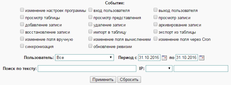 Так как в лог заносится большой объем данных, не всегда бывает просто найти то, что вас интересует, поэтому мы реализовали поиск по логам. С помощью системы поиска можно сделать выборку лога: за определенную дату, по пользователям системы, по тем действиям, которые совершали пользователи. Например, можно выбрать только строки, которые были удалены за определенный промежуток времени. С помощью такого поиска можно очень быстро найти те данные в логе, которые вас интересуют.