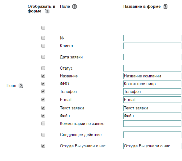 Для вас нет ограничений в выборе полей, по которым может проводиться анкетирование. Вы сами выбираете, какие поля будут отображаться в форме, и как они будут называться.