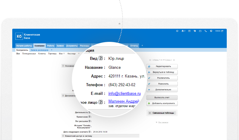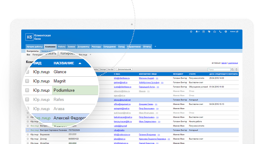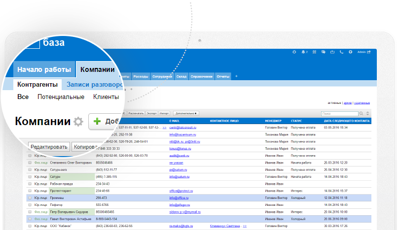 Ведите общую базу клиентов компании, их сотрудников и истории переговоров