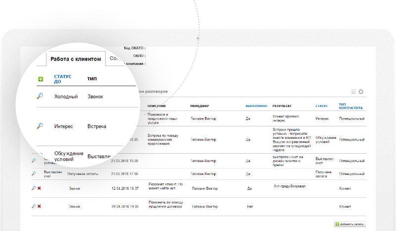 При этом можно предоставить доступ любому менеджеру только к своим клиентам или только к определенным полям.