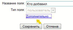 3. Выберите поле типа "Пользователь" и откройте дополнительные настройки. Поле "Кто добавил" является системным, и существует в каждой таблице. По умолчанию равно пользователю, который создал запись.