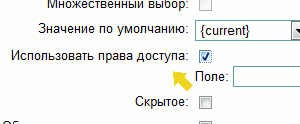 4. Поставив галочку напротив "Использовать права доступа" Перед вами откроется меню, в котором вы сможете выбрать поля в таблице, на которые будут распространятся расширенные права доступа. Права доступа применяются к полям, если текущий пользователь и значение в поле пользователь равно.