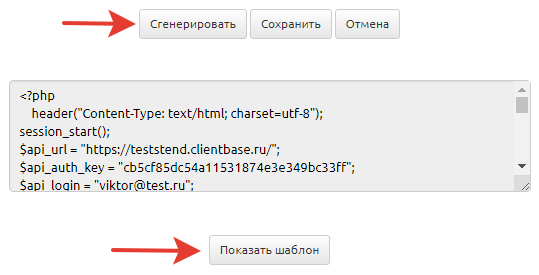 Нажмите кнопку «Сгенерировать». Сгенерируется код, который вам необходимо встроить в файл .php на хостинге.