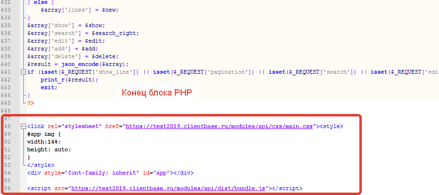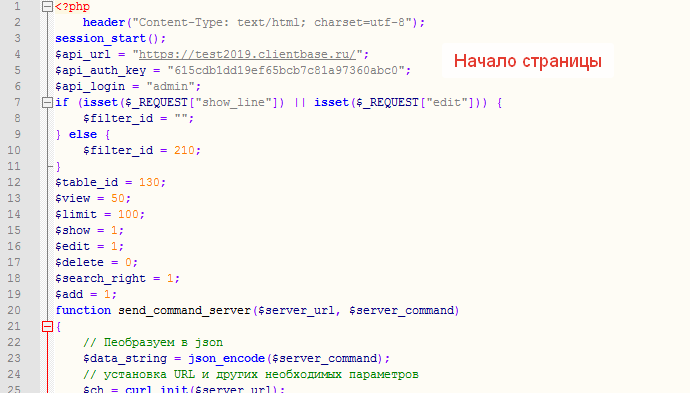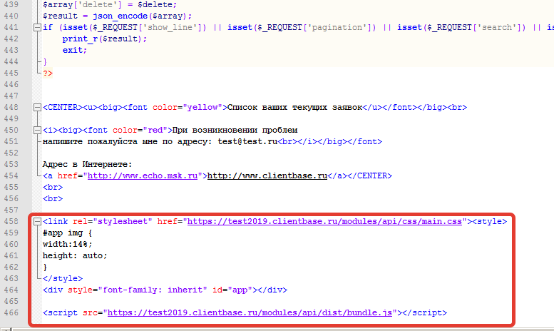 3. Вставляется оставшаяся часть шаблона — код JS+CSS, в ту часть основного кода страницы, где вы хотите увидеть информацию из таблицы CRM. Далее на скриншотах вы увидите, как это выглядит.