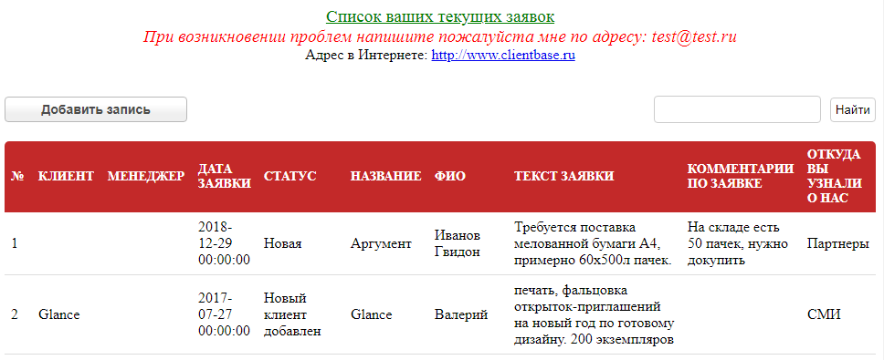 CRM «Клиентская база» предоставляет возможность воспользоваться ее функционалом на вашем сайте через API (программный интерфейс приложения). Вы сможете взаимодействовать с таблицами практически так же, как и через CRM.