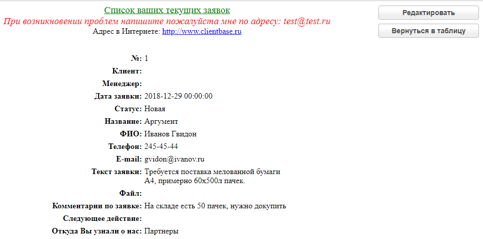 Можно сделать на него ссылку на веб-странице вашего сайта или форума, если нужно просмотреть таблицу. Как вариант использования можно прислать кому-либо ссылку по почте, чтобы другой мог внести какие-то изменения в определенную таблицу, не видя всего остального. Например: https://mytesthomepage.ru/kb_api.php Перейдя по ссылке, вы получите возможность работать с таблицей под установленным ранее пользователем с выбранными правами. Тег для вставки в страницу будет иметь вид: <a href="https://mytesthomepage.ru/kb_api.php">Клиентская База - Товары для просмотра и добавления</a>