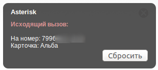 Вызов/разговор можно завершить из программы, нажав на кнопку «Сбросить» в карточке активного звонка в правом нижнем углу экрана.