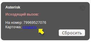 В противном случае карточка будет содержать только номер вызываемого абонента с ссылкой на создание карточки клиента в настроенной таблице звонков.