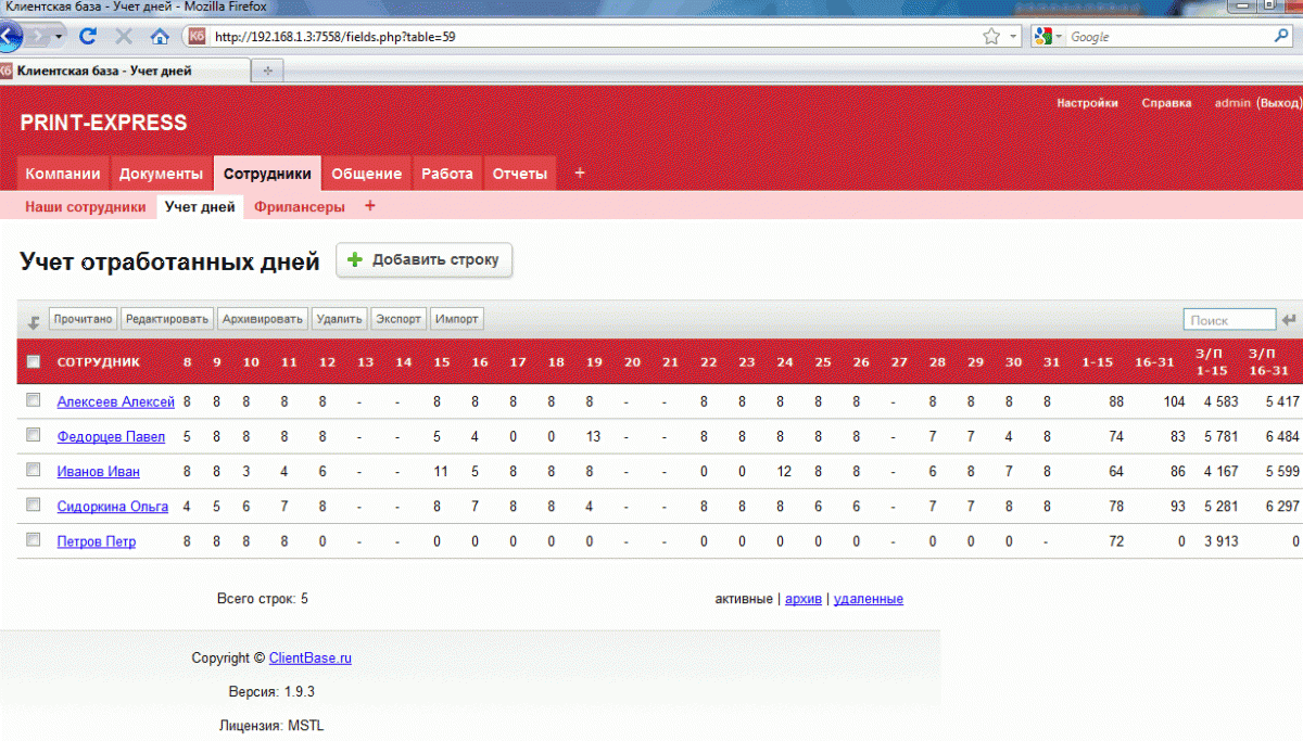 2. Открываем таблицу «Сотрудники компании». Выбираем нужного сотрудника и открываем контекстное меню. Мы видим, что в данном случае для выбора доступно гораздо больше действий.