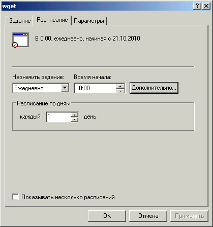 11. Перейдите во вкладку "Расписание", нажмите кнопку "Дополнительно".