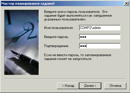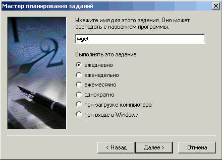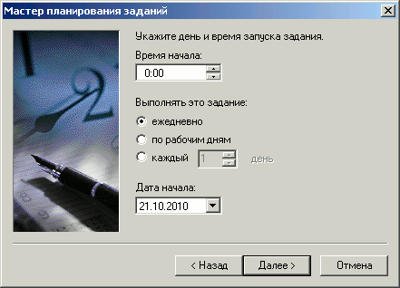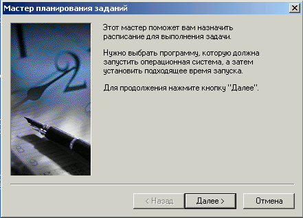 3. Откроется окно "Мастер планированя задания", для продолжения нажмите "Далее".
