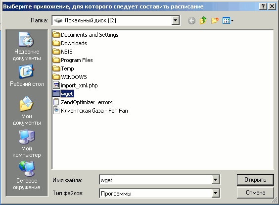 5. Выберите файл "wget.exe" на диске "c:".