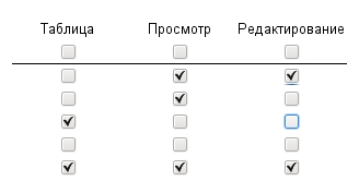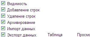 Для каждой таблицы можно настроить следующие права: