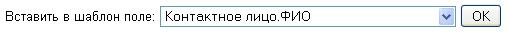 Для этого поставьте курсор в нужное место тела шаблона и выберите в поле "Вставить в шаблон поле", нужное вам поле, например ФИО контактного лица: