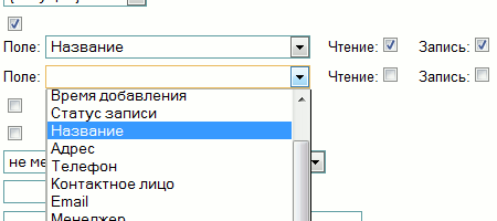 5. Обозначение расширенных прав доступа аналогично обозначению расширенных прав в группах доступа. Т.е. поставив галочку напротив значения "Чтение" пользователь сможет видеть значение в поле. Поставив галочку напротив значения "Запись" пользователь сможет изменять значения в этом поле.