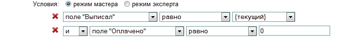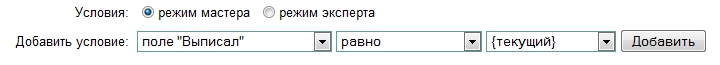 Режим Мастера позволяет добавить условие последовательно выбрав