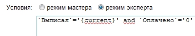 Важно: Если добавить/отредактировать условие фильтра в режиме Эксперта, то оно не отобразиться в режиме мастера