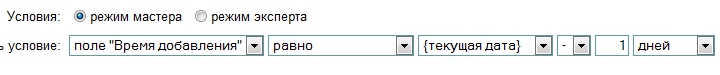 Здесь стоит обратить внимание, что одинаковое условие по полю "Время добавления" указывается два раза. Это необходимо, когда в условии используется "ИЛИ".
