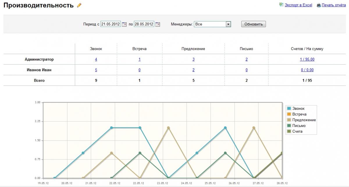 В CRM системе "Клиентская база" возможно создание 4 видов отчетов