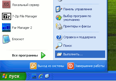 1. Откройте Меню "Пуск", выберите "Выполнить".