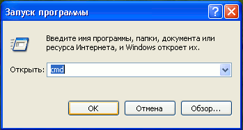2. В появившемся окне напишите "cmd", нажмите "Ок".