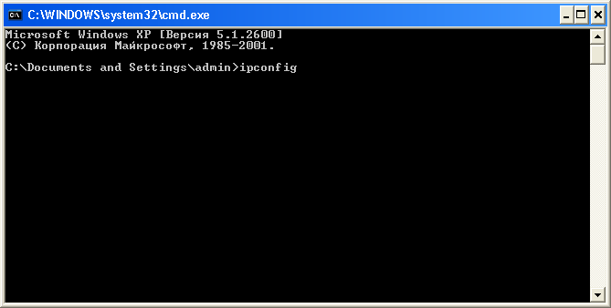 3. В появившемся черном окне, напишите "ipconfig", нажмите "Enter".