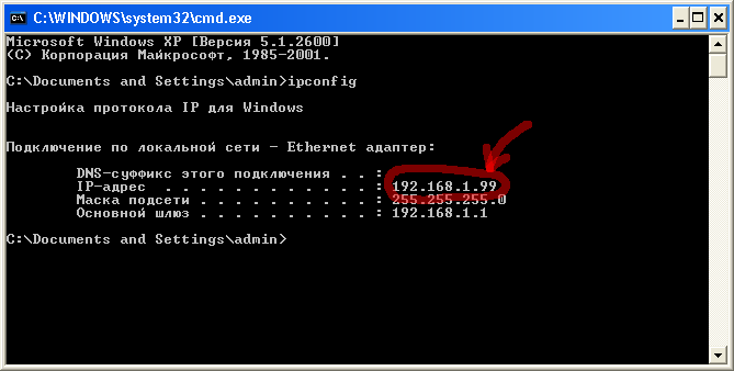 Для того чтобы определить ip адрес вашего компьютера воспользуемся командой ipconfig.
