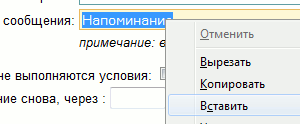 Итак, с условием, при котором сработает напоминание мы разобрались, теперь нужно заполнить поле "Сообщения". В него записываем текст, который будет выводиться. В нашем случае сообщение должно содержать данные о том, кому и когда надо позвонить, телефон, и информацию, о теме звонка. Получается такой текст: