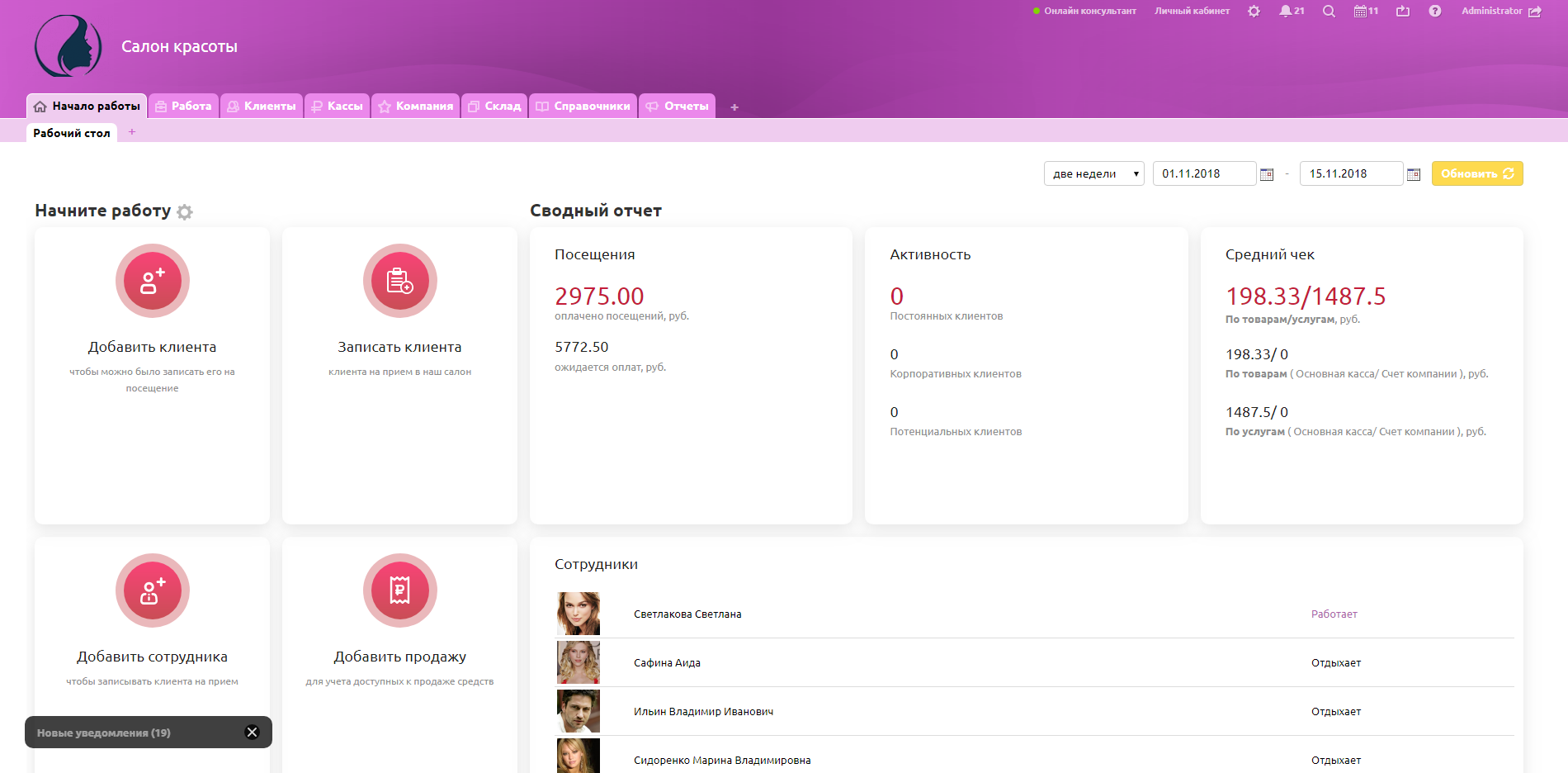 - Добавлена настройка "Отображать на рабочем столе?" в анкете сотрудника салона