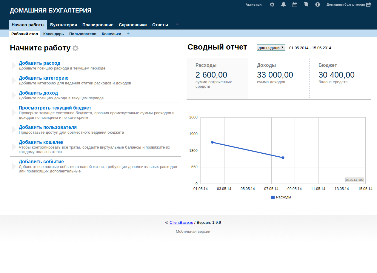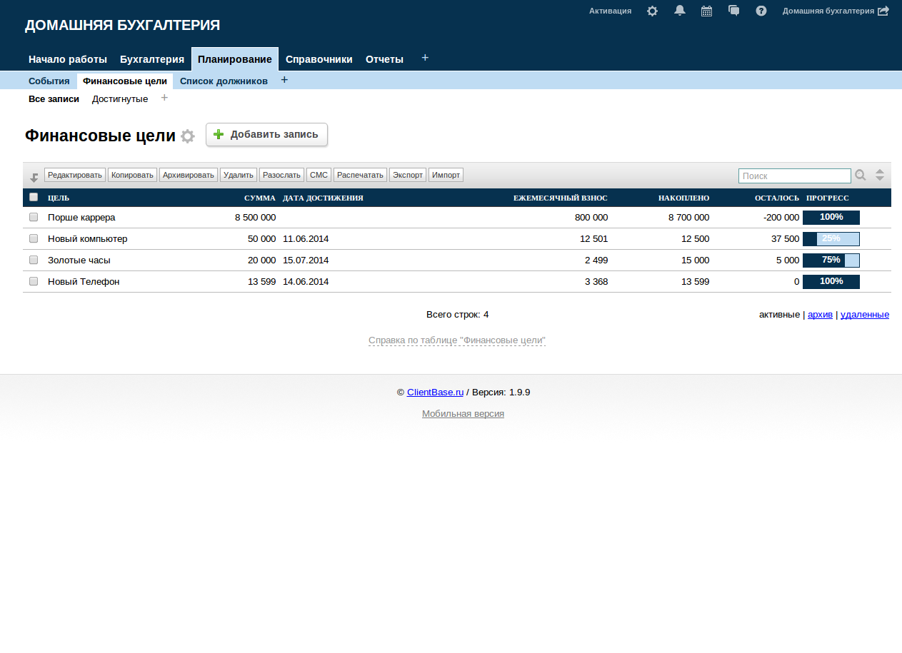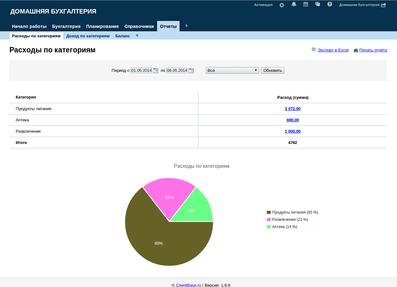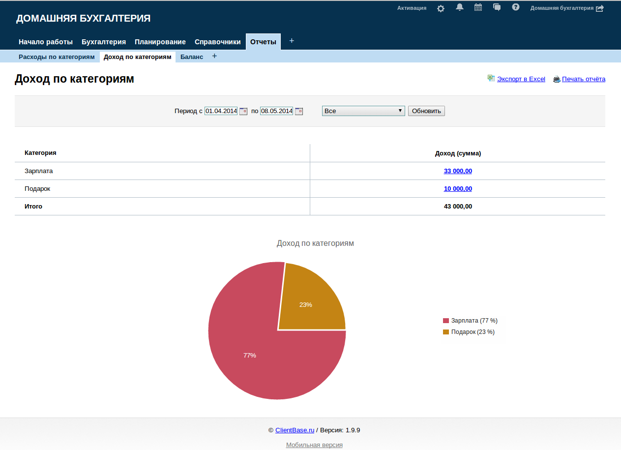 Конфигурация рассчитана на ведение единого бюджета, но при этом вы можете предоставить доступ в систему нескольким пользователям и при помощи отчетов отслеживать по каждому из них доходы и расходы.