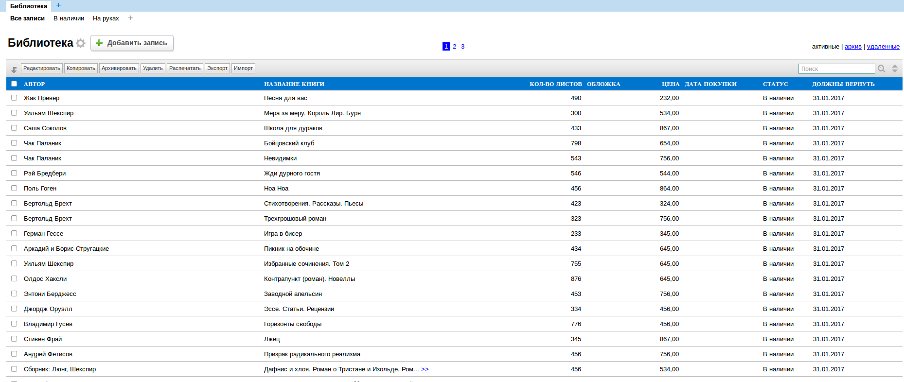Вы владеете обширной библиотекой и хотите делиться книгами со своими сотрудниками? Делайте это при помощи нашей CRM. Создайте базу ваших книг, а сотрудники с легкостью смогут присоединиться к вам, вносить свои книги и обмениваться с коллегами. Делитесь знаниями и совершенствуйте навыки!