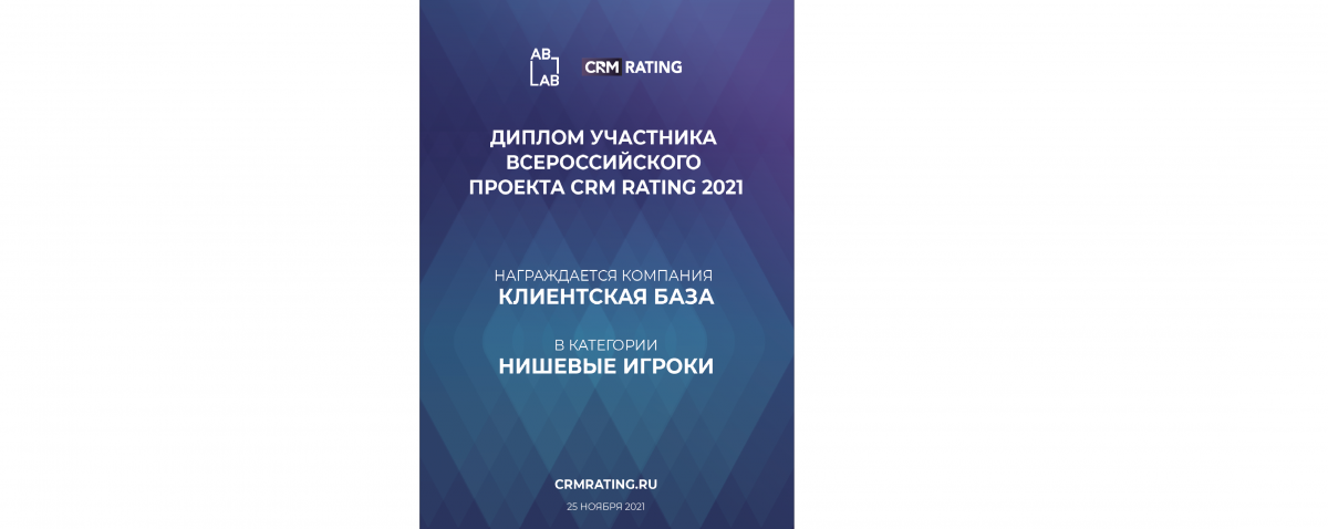 Заканчиваем год приятными новостями! В этом году Кб попала в список лучших CRM 2021 года. И не просто попала, а заняла первое место в категории нишевых игроков.