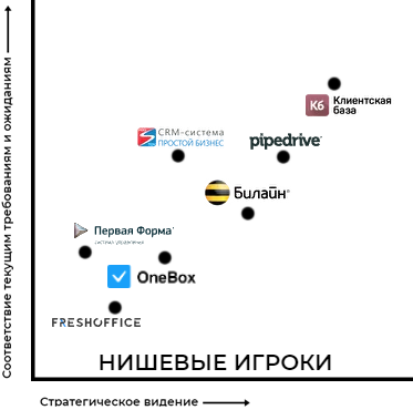 Клиентская база соответствует ожиданиям рынка и имеет свою стратегию развития, которая ей в этом помогает. Так crm программа Кб заняла первое место среди нишевых игроков.