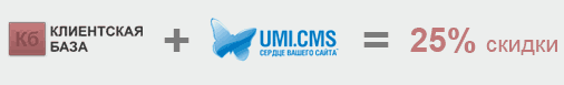 Все существующие и будущие обладатели любой лицензии на программу "Клиентская база" имеют возможность купить систему управления сайтами UMI.CMS (в любой конфигурации) со скидкой 25%.